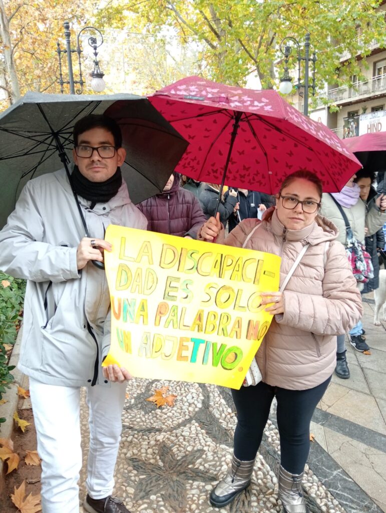 La marcha que trascurrió acompañada por una batucada por la Carrera de la Virgen, fuente de las Batallas y vió modificado su recorrido para concluir en la calle Ganivet, donde se leyó el manifiesto del CERMI emitido para este día. En representación de nuestra entidad y de nuestro colectivo intervino Laura Fernández que leyó un párrafo de dicho manifiesto