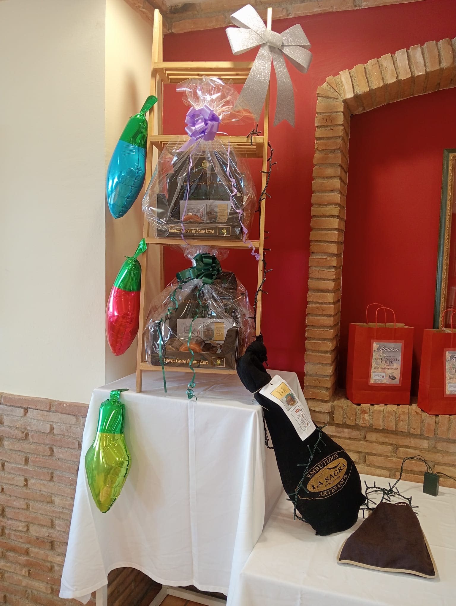 Como cada año, se realizaron varios sorteos. Unos con el número de entrada y se regalaron tres lotes de vino y un mantón hecho a crochet y posteriormente se hicieron otros cuatro más donde se regalaron unos lotes navideños, una paletilla ibérica y un queso donados por D. Antonio Ruiz Medina y un belén hecho a crochet por María Melguizo.