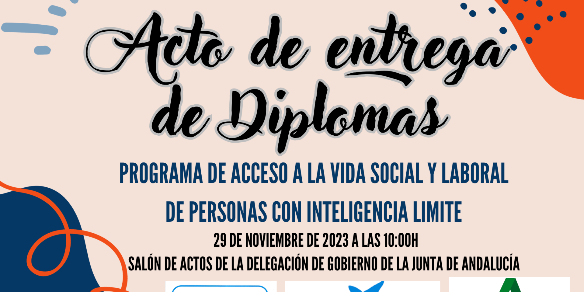 Esta mañana, en el salón de actos de la Delegación de Gobierno de la Junta de Andalucía hemos celebrado el acto de clausura y entrega de diplomas a los/as participantes/as en el PROGRAMA DE ACCESO A LA VIDA SOCIAL Y LABORAL DE PERSONAS CON INTELIGENCIA LÍMITE.
