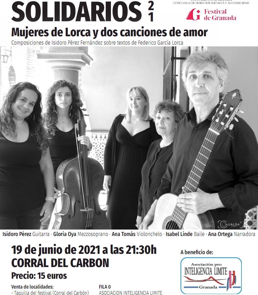 El sábado 19 de Junio de 2.021 se celebró en El Corral del Carbón , dentro de la programación del FEX, el espectáculo ‘Mujeres de Lorca y dos canciones de amor’ a beneficio de nuestra entidad y de la Asociación Síndrome de Down de Granada.