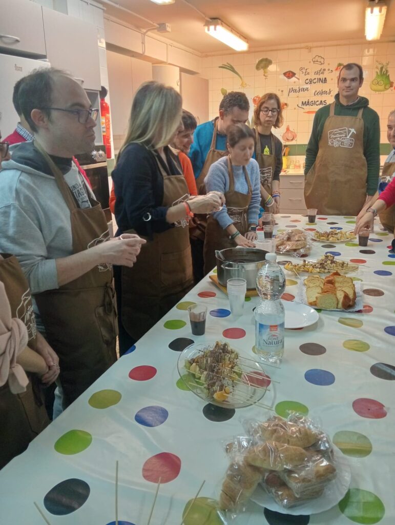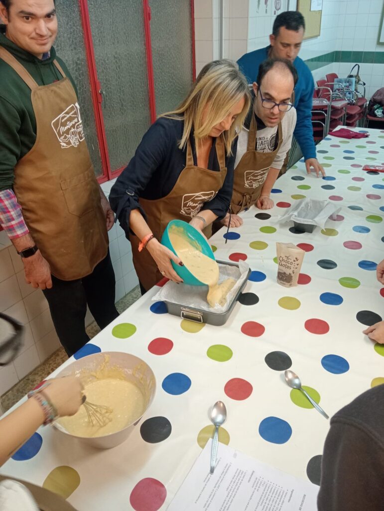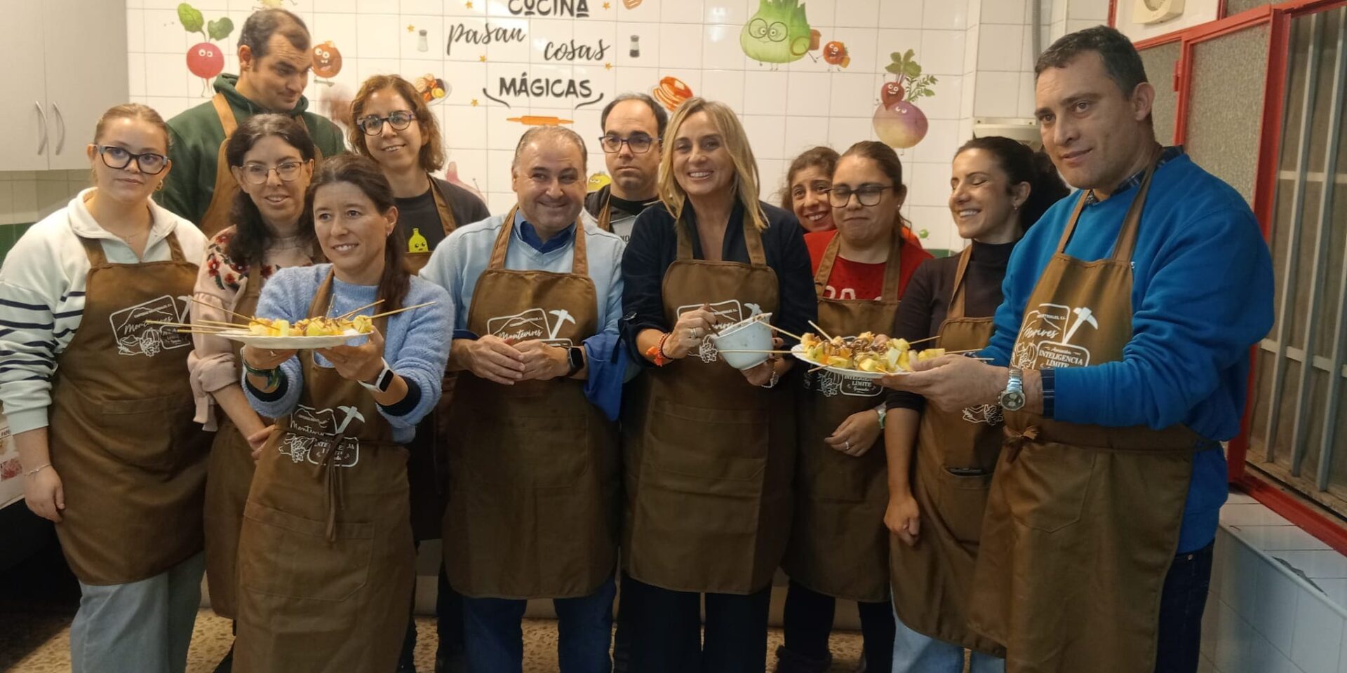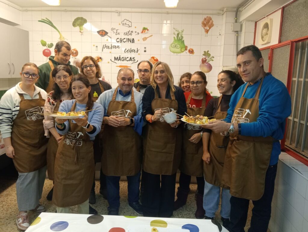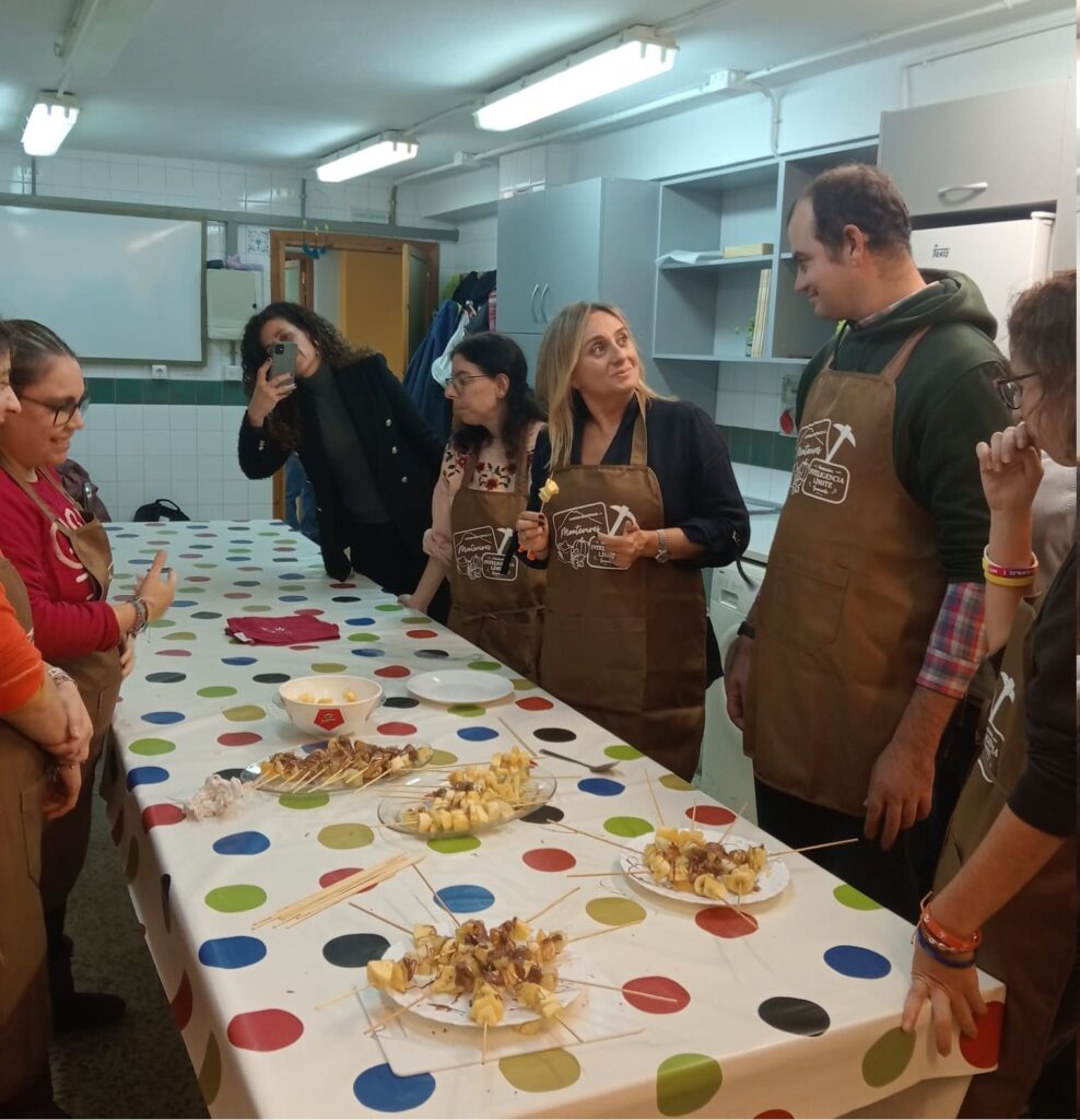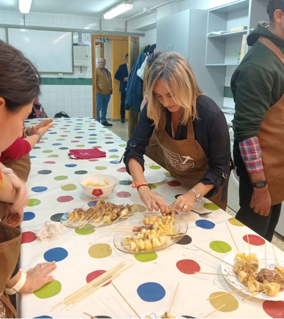 El grupo de cocina de ese día la acogió con el entusiasmo de compartir fogones con la alcaldesa de la ciudad, y aunque el taller se realizó con la metodología de siempre, la jornada fue bastante especial.