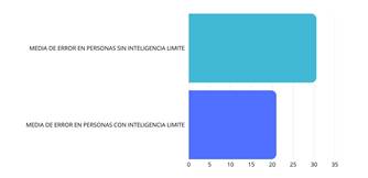 Analizado los resultados según el sexo, el margen de error en los hombres sin inteligencia límite es de 36,64% frente al 27,06% de las mujeres sin inteligencia límite.