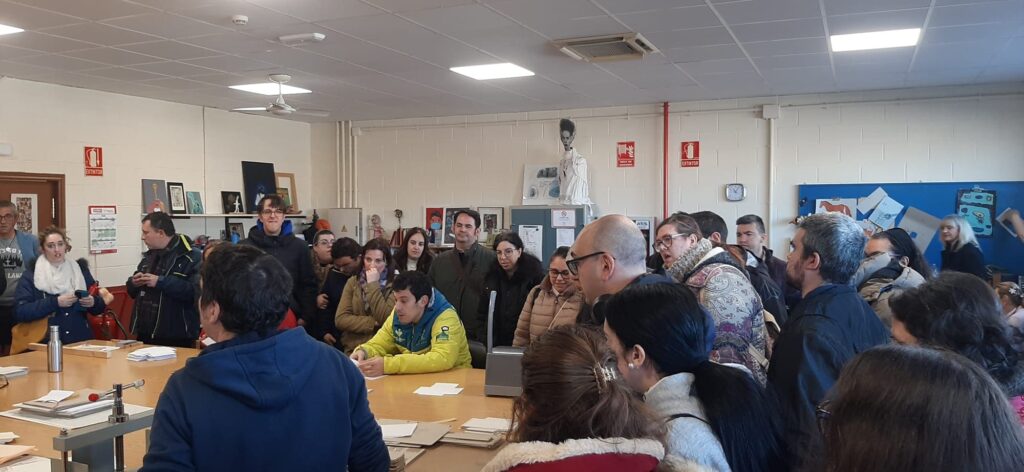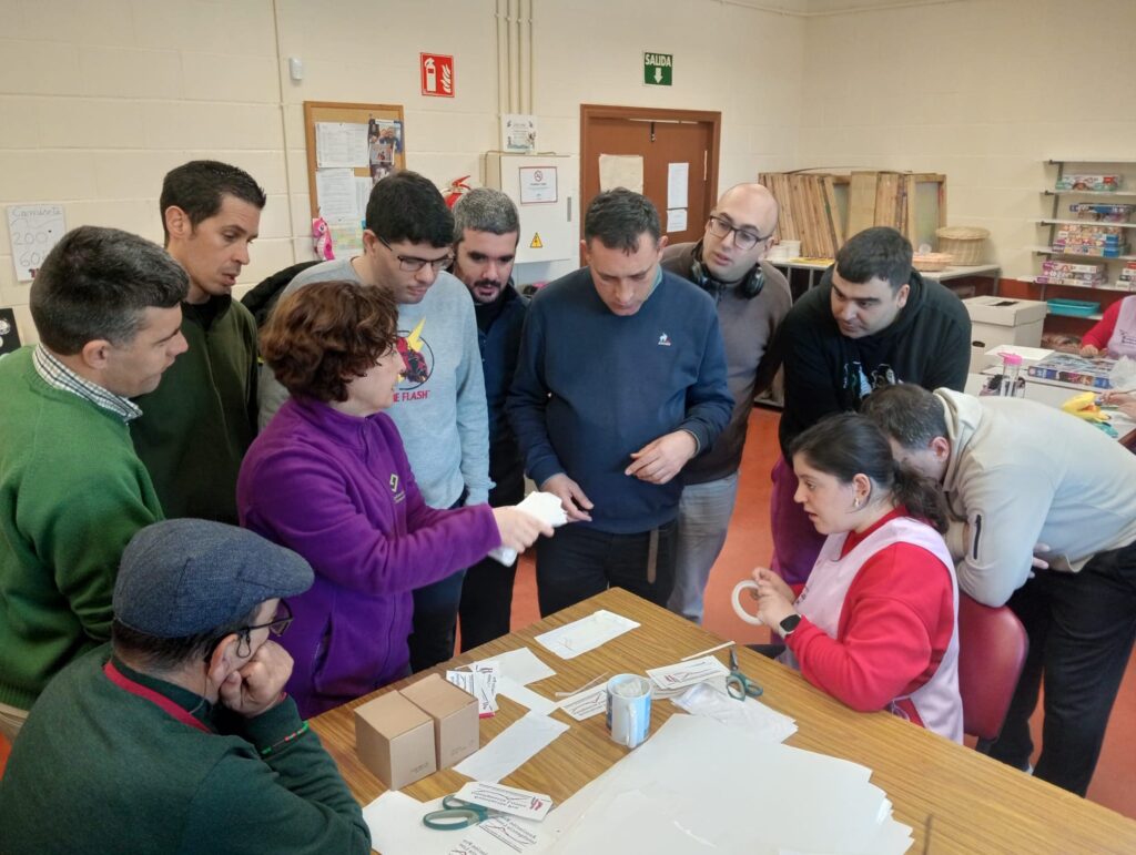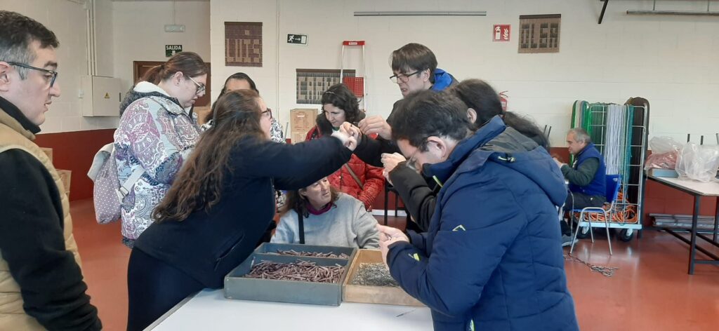 Tras visitar y conocer el método de trabajo de diferentes talleres: carpintería, cortinas, costura, cestería,encuadernación, serigrafía y jabones, los/as asistentes de nuestra entidad, divididos en diferentes grupos de trabajo, se integraron en el funcionamiento de los mismos, realizando elementos de los que allí se producen.